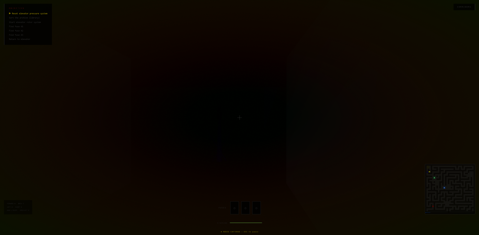 Labyrinth of No Return is a first-person survival horror game set inside a procedurally generated maze that never looks the same twice. Armed with nothing but a flickering flashlight and decaying night-vision, you must complete three system tasks to unlock the elevator fuses — then find them, survive long enough to insert them, and escape before the labyrinth's inhabitants decide you've overstayed your welcome.